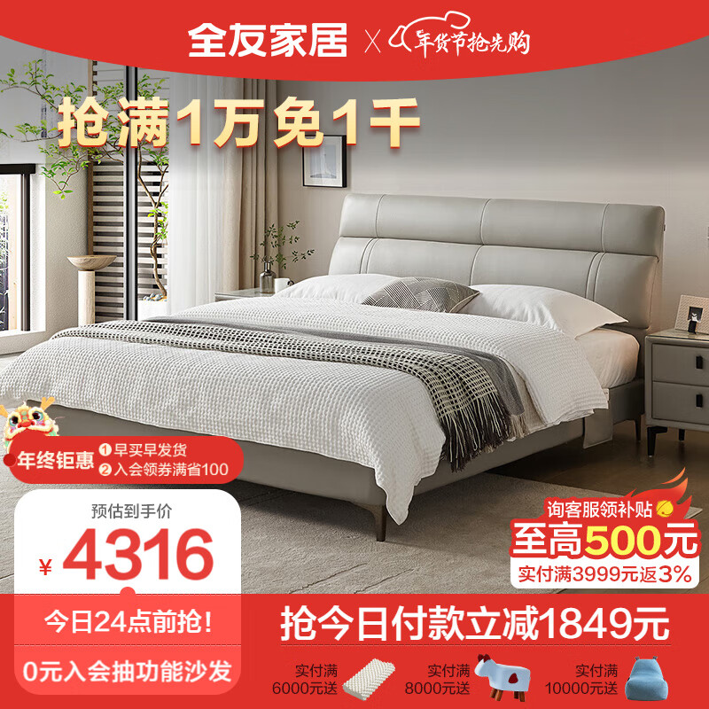 全友家居 进口头层皮皮床简约1.8米双人床护腰软床卧室家具105251A价格:6165.71元!