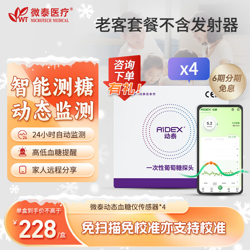 微泰动泰 动态血糖测试仪家用14天连续测血糖仪器免扫描免校准传感器探头(老客2个月测糖包)价格:1720.00元!