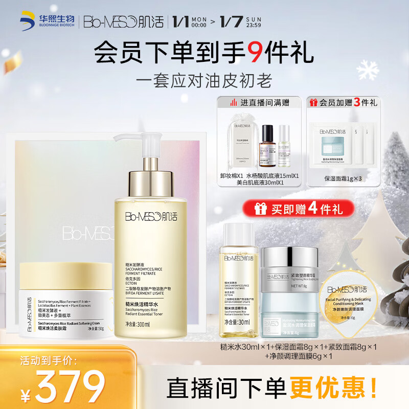 肌活(Bio-MESO)糙米水肌活面霜套装礼盒(水300ml+面霜50g)生日礼物送女友价格:399.00元!