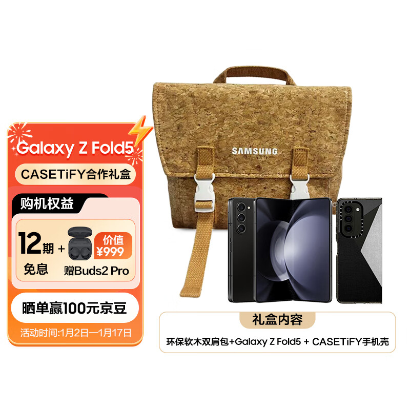 三星(SAMSUNG) Galaxy Z Fold5 CASETiFY合作礼盒 12GB+512GB 宇夜黑 5G折叠手机价格:12999.00元!