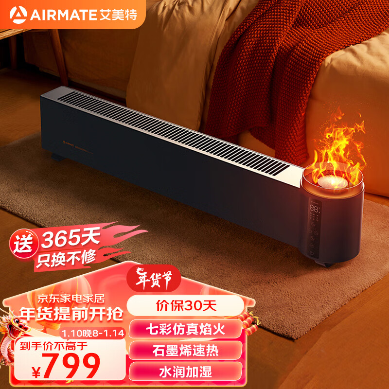 艾美特(AIRMATE)【环形篝火】石墨烯踢脚线取暖器电暖器暖风机家用电暖气片浴室防水移动地暖 加湿烤火炉 AIR5 PRO价格:999.00元!