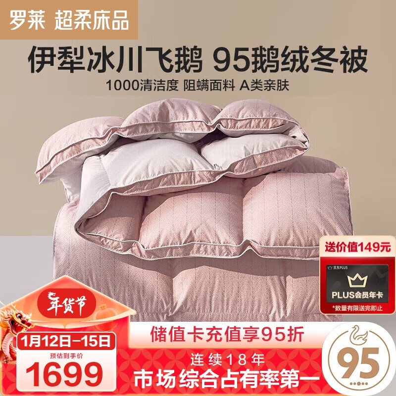 罗莱家纺 星耀溯源 A类95%鹅绒被冬被子 600g 150*215cm粉价格:2499.00元!