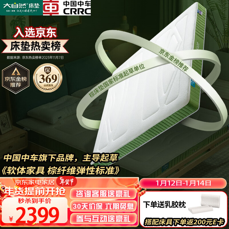 大自然山棕床垫椰棕棕榈棕垫 可定制榻榻米 森梦 1.5米*2米*7厘米价格:2759.00元!