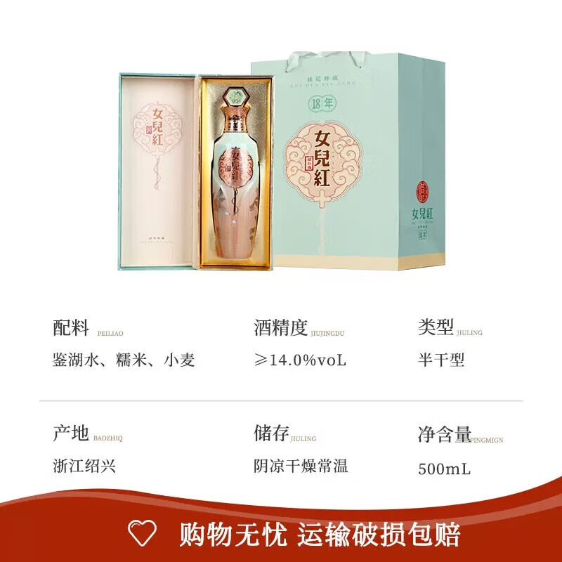女兒红 桂花林藏十八年 典雅版 半干型 绍兴黄酒 500ml*6瓶 整箱装 礼盒价格:2208.00元!