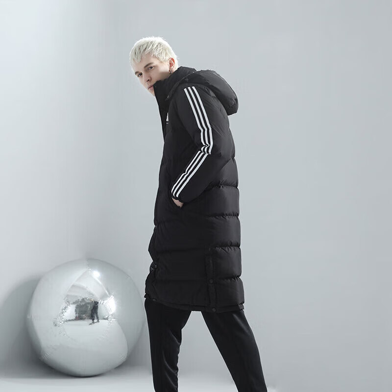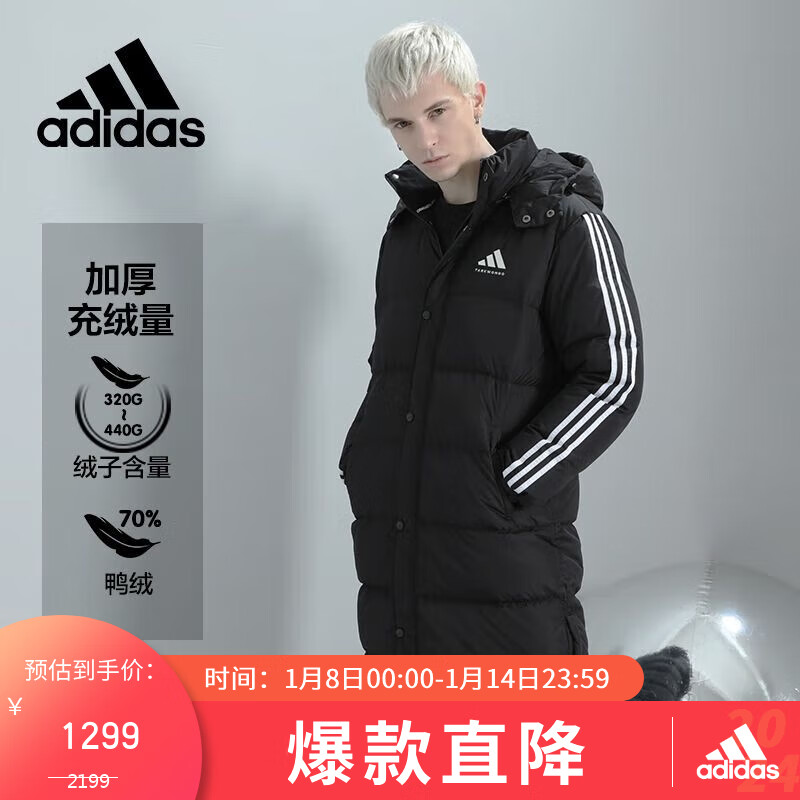 阿迪达斯 (adidas)羽绒服男2023冬季保暖外套加厚鸭绒长款羽绒服 黑白 XL价格:1299.00元!