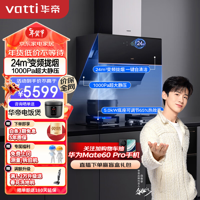 华帝(VATTI)抽油烟机旗舰机王侧吸式变频油烟机燃气灶具消毒柜家用厨房三件套i11193+72B+3040(天然气)价格:5599.00元!