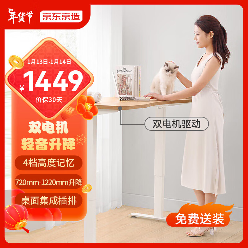 京东京造电动升降桌 电脑桌 书桌 桌子学习桌 双电机1.4m原木色价格:1649.00元!