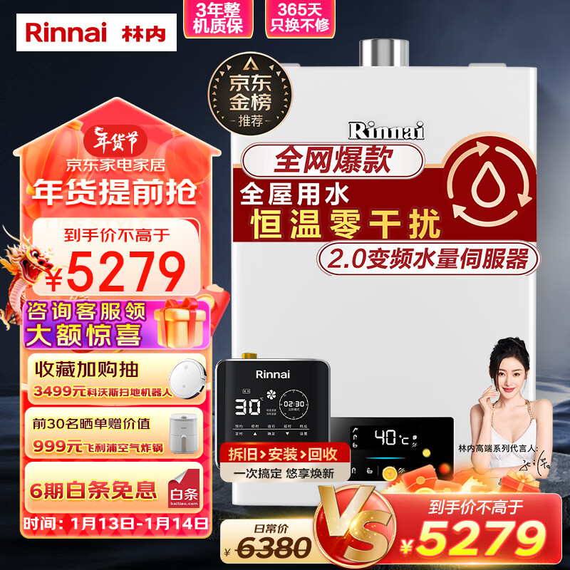 林内(Rinnai)16升零冷水套装水量伺服器防冻燃气热水器下置风机天然气RUS-16QC06+SG (JSQ31-C06)价格:5279.00元!