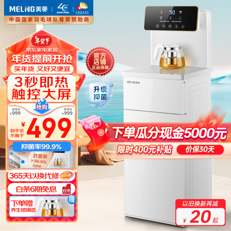 美菱(MeiLing)即热式茶吧机家用 客厅办公室立式饮水机触控彩屏多档调温3秒速热智能恒温MY-J05价格:499.00元!