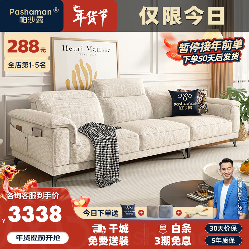 帕沙曼(pashaman)布艺沙发 海岛布客厅现代小户型高靠背沙发奶油风 2.5米 1018FZ价格:4279.00元!