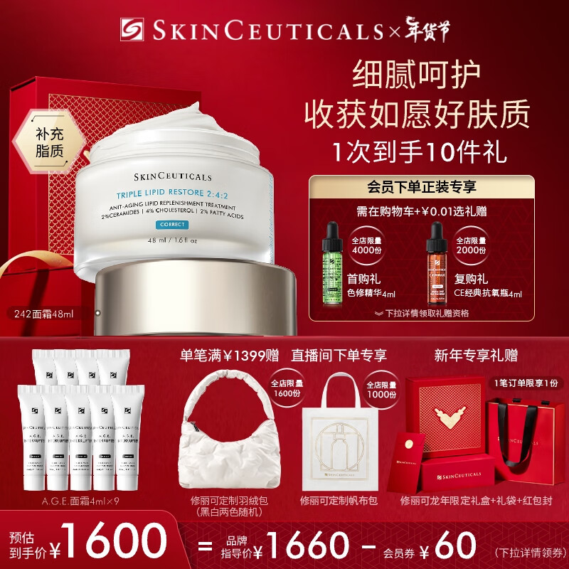 修丽可242面霜48ml 护肤品礼盒神经酰胺修护屏障保湿敏感肌生日礼物女价格:1660.00元!
