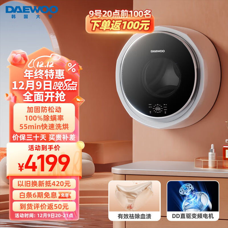 大宇(DAEWOO)3公斤壁挂洗衣机迷你滚筒洗衣机洗烘一体机全自动婴儿内衣洗衣机 dd直驱变频 DY-BGX05H 皎月白价格:4399.00元!