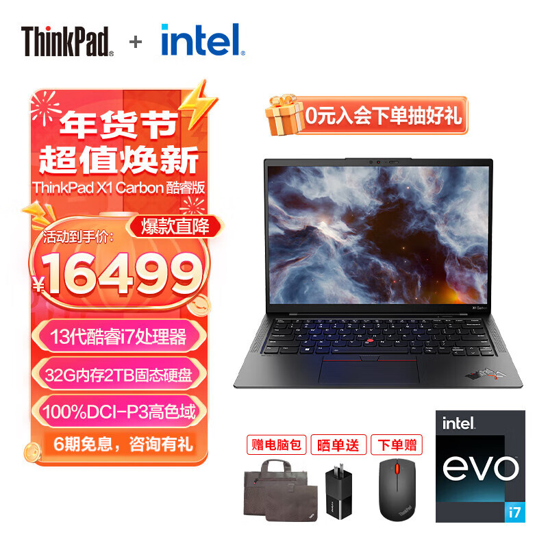 ThinkPad X1 Carbon 联想 14英寸高性能商务轻薄笔记本电脑13代英特尔酷睿处理器LTE全时互联 13代i7 32G 2TB 2.8K 03CD价格:16499.00元!