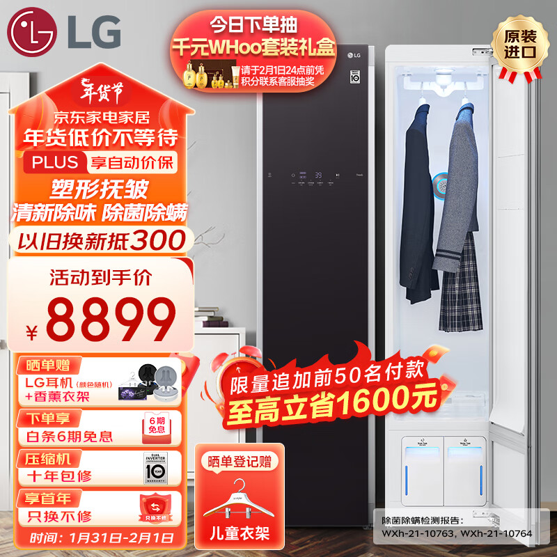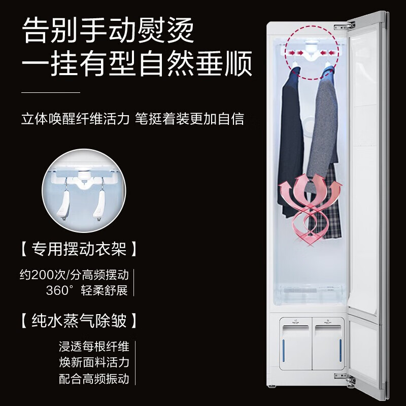 LGStyler 奂颜系列衣物护理机 进口蒸汽除皱烘干塑形 智能除菌衣物消毒烘干衣柜 3件衣服 暮云灰S3CW价格:10499.00元!