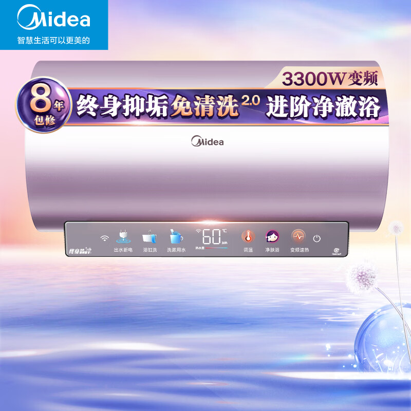 美的(Midea)电热水器80升3300W变频速热镁棒免换内胆免清洗一级能效美肤浴家用储水式F8033-JE8(HE)价格:2899.00元!