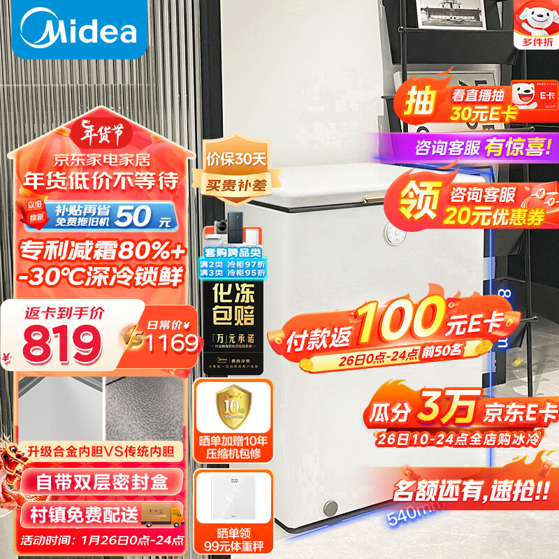 美的(Midea)复古时光冰柜 100升-30℃锁鲜减霜节能家用囤货小冰柜 电子控温 单温母乳小冷柜 BD/BC-100KMT(E)价格:1019.00元!