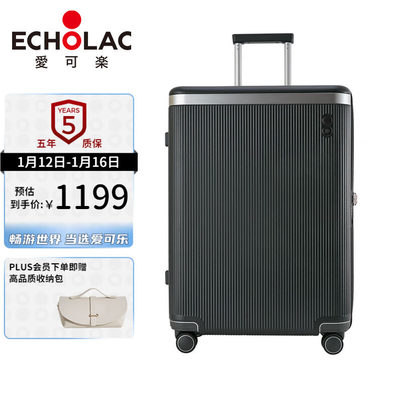 爱可乐(Echolac)明星付辛博同款 大容量行李箱拉杆箱旅行箱PC142深灰色24吋价格:1439.00元!