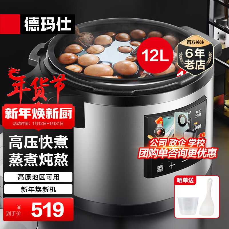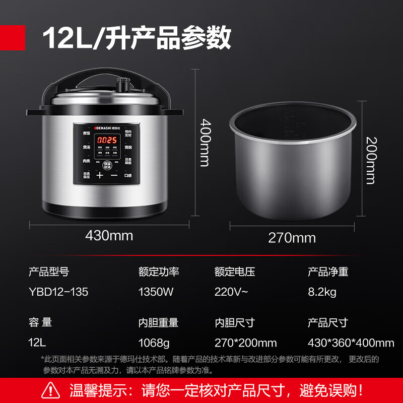 德玛仕商用电锅 电高压锅大容量12L升多功能单位企业食堂饭店高电饭煲锅15-20人用YBD12-135价格:519.00元!