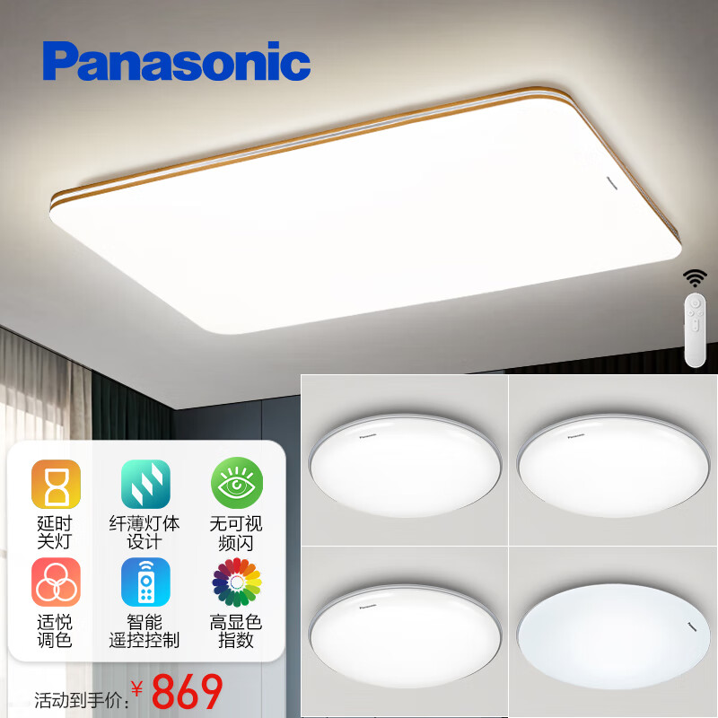 松下(Panasonic)吸顶灯客厅灯遥控调光调色超薄灯具 明畔四室一厅价格:1269.00元!