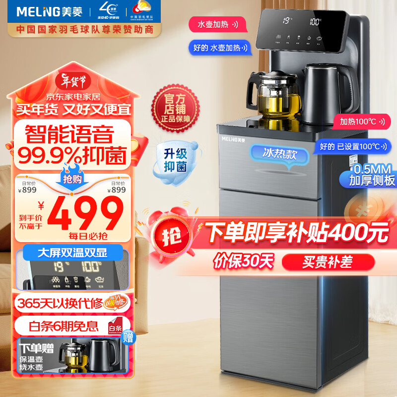 美菱(MeiLing)茶吧机家用多功能智能语音遥控大屏立式下置式饮水机加厚铁侧板旗舰遥控语音冰热ZMD系列 MC-05B价格:554.00元!