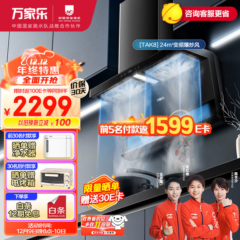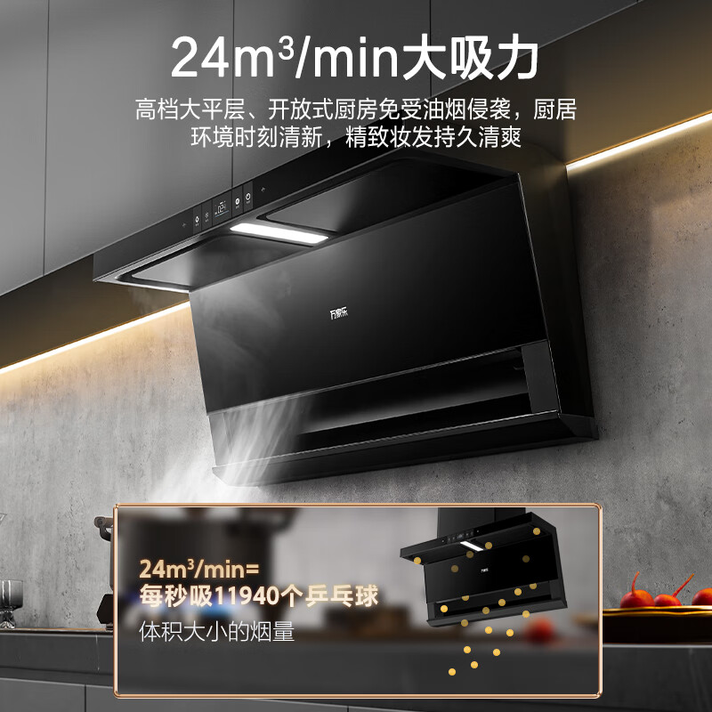 万家乐顶侧双吸油烟机 三腔变频静音油烟机 24m3/min大风量挥手自清洗 1050Pa抽油烟机CXW-320-TAK8价格:2498.98元!