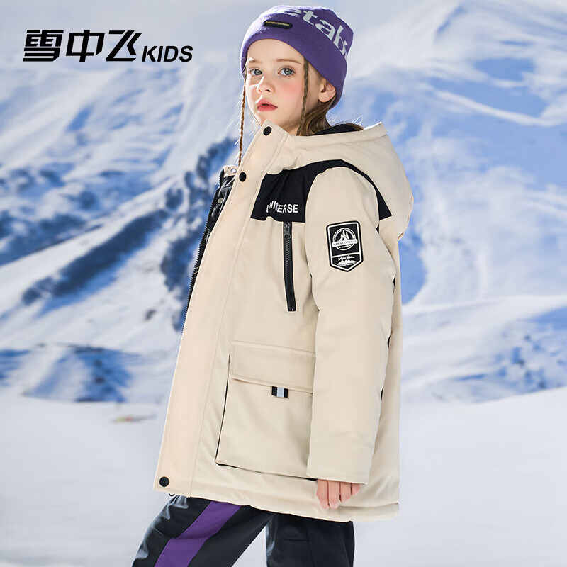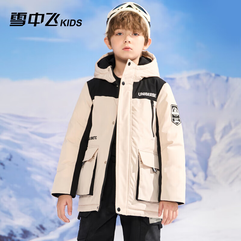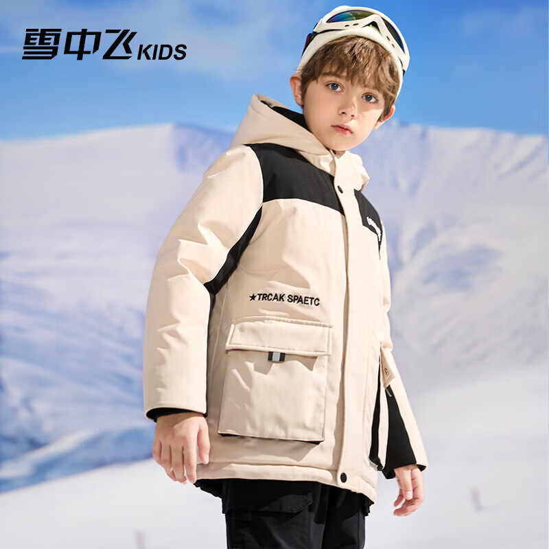 雪中飞童装儿童羽绒服男女童工装中大童羽绒加厚外套浅米色140cm价格:699.00元!