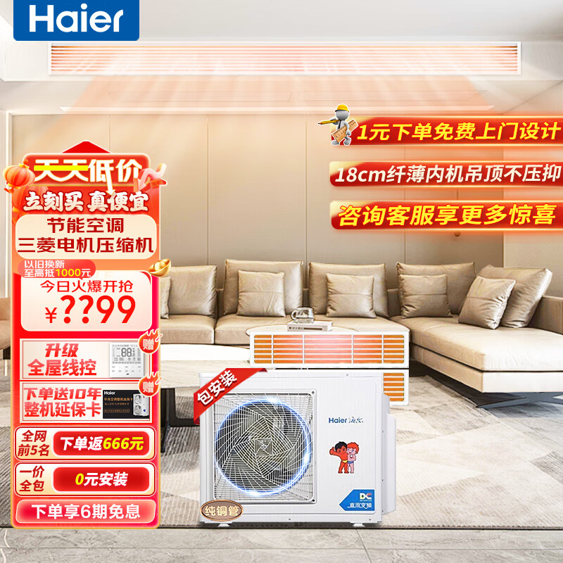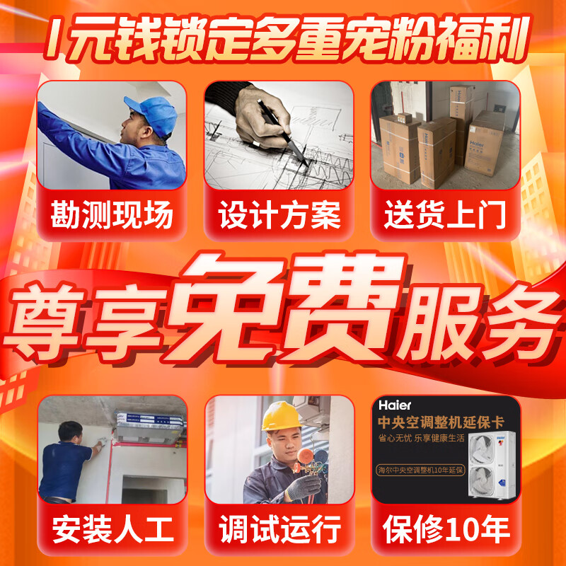 4、海尔空调质量还是很好的,安装师傅来的也很快,工作认真,希望海尔中央空调能够选择京东快递配送。接下来就等着安装完成试用了。