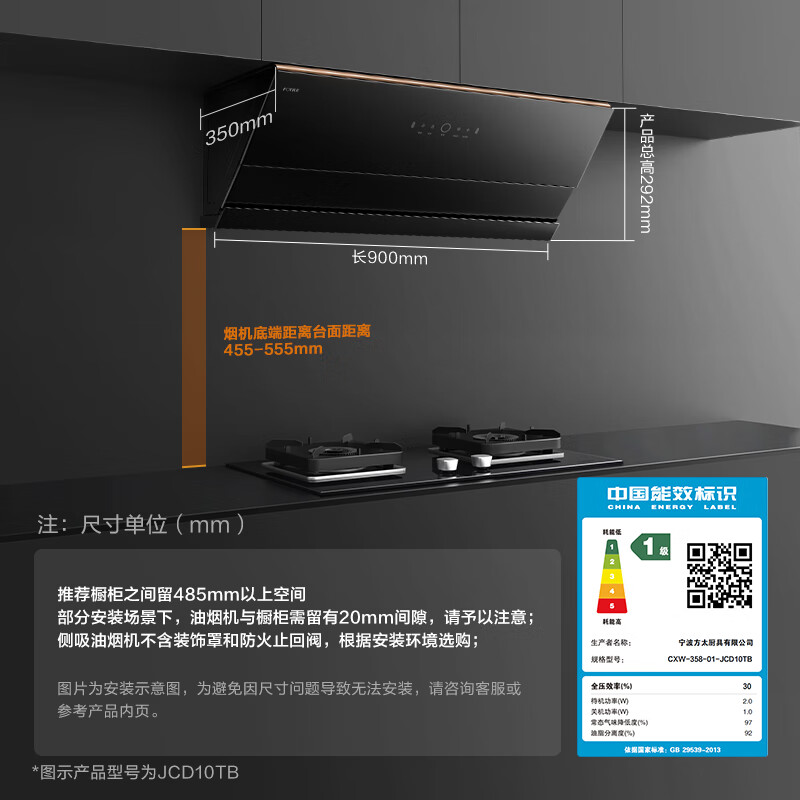 烟机安装尺寸:900±50mm