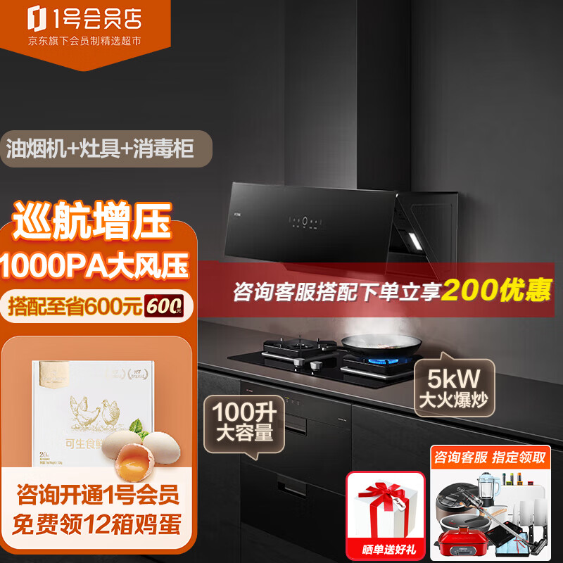 方太油烟机灶具消毒柜套装 侧吸式抽吸油烟机燃气灶消毒柜 家用烟灶消毒碗柜三件套JCD10TB+TH29B+J51E价格:5988.00元!