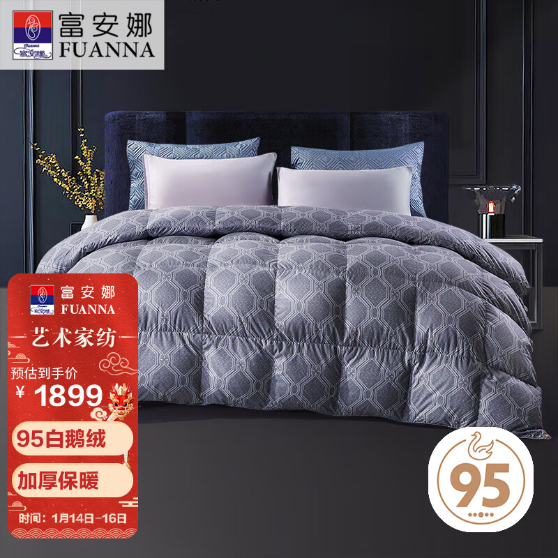 富安娜 费德里 95%白鹅绒羽绒被 加厚冬被 1100g填充 203*229cm 灰色价格:2699.00元!