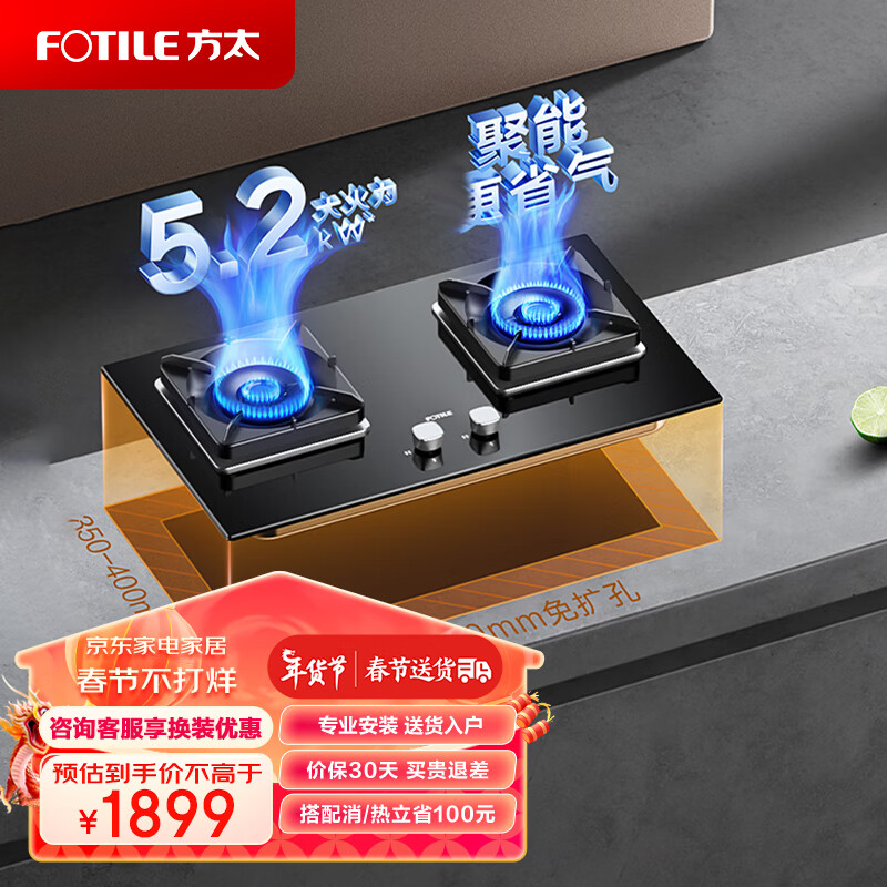 方太燃气灶(天然气)家用嵌入式猛火双灶台灶具 5.2kW*大火力 可调节底盘 JZT-02-TH27B价格:1869.00元!