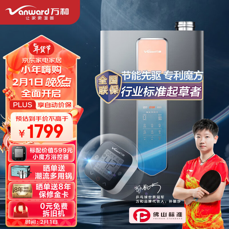 万和(Vanward)16升零冷水燃气热水器佛山标准产品小魔方分屏控温一级能效冷凝天然气 LS6D16【金榜爆品】价格:1799.00元!
