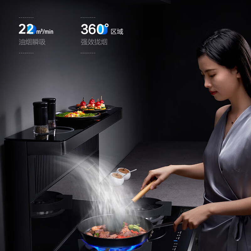 2、集成灶吸烟能力很大,火力猛,爆炒时瞬间吸走,好用。外观颜值高,很上档次,安装也不难,商家全程指导,很贴心。