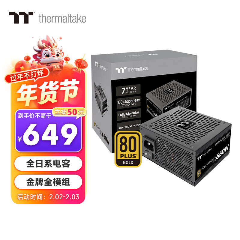 Thermaltake(Tt)额定650W 钢影Toughpower SFX 电脑电源(80PLUS金牌/全模组/全日系电容/附ATX转接架)价格:649.00元!