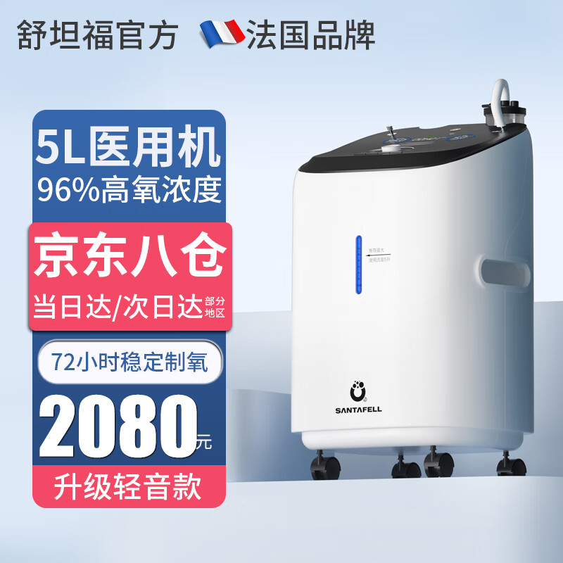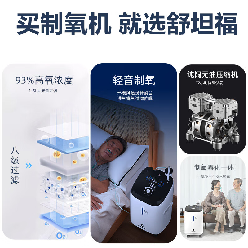 舒坦福【制氧12年】5L升医用分子筛制氧机家用老人吸氧机呼吸氧气机轻音医疗级哮喘便携式带雾化RK-05B轻音款价格:2440.00元!