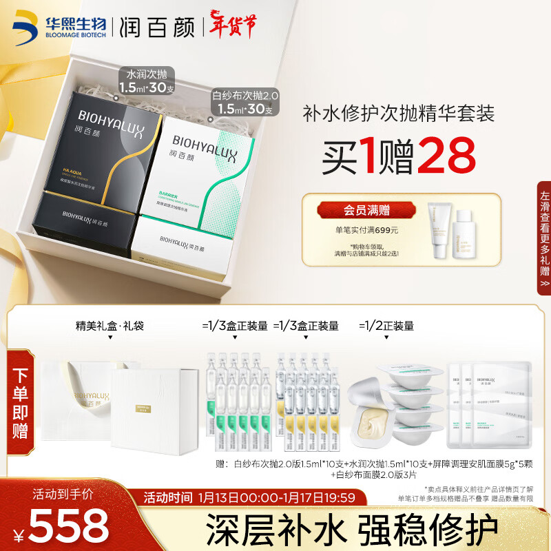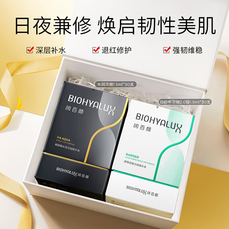 润百颜玻尿酸次抛精华(水润30支+2.0屏障30支)护肤品礼盒补水礼物女价格:558.00元!