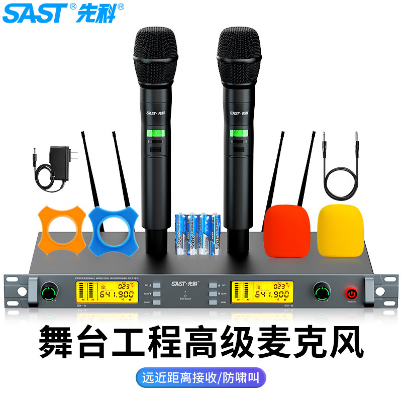 先科(SAST)OK-102 真分集无线话筒麦克风一拖二舞台演出ktv歌防啸叫麦克风远程U段婚庆电容学校庆典价格:1599.00元!