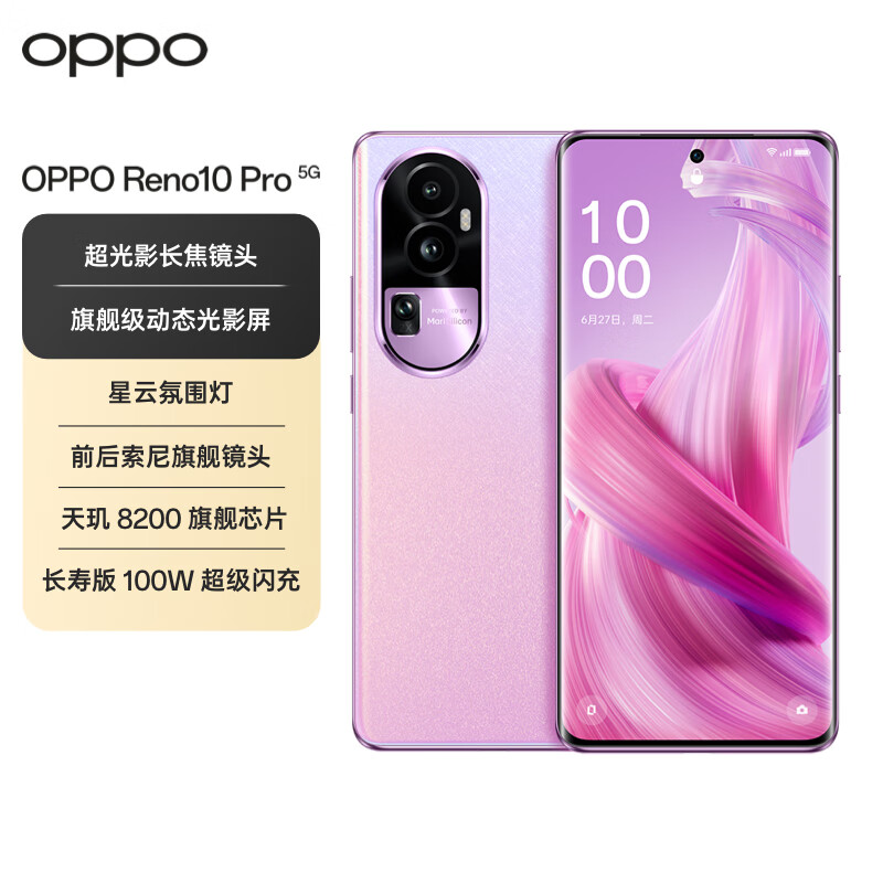 OPPO Reno10 Pro 16GB+512GB 星籁版 天玑8200旗舰芯片 超光影长焦镜头 长寿版100W 超级闪充 5G手机价格:3599.00元!