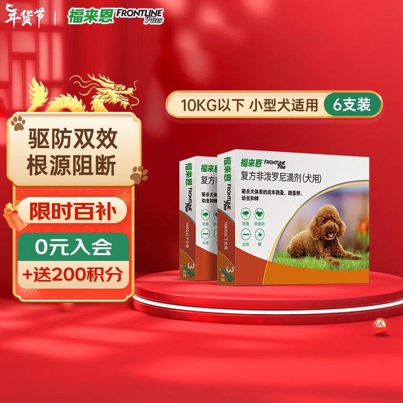 福来恩(FRONTLINE)狗狗驱虫药体外滴剂 宠物去除跳蚤蜱虫药品法国进口小型犬 0.67ml*6支装价格:276.00元!