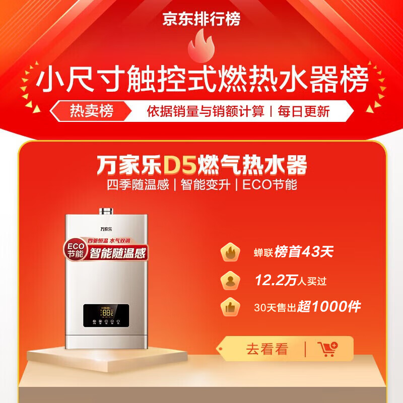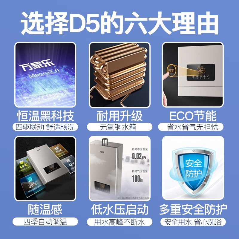 万家乐 16升燃气热水器(天然气) 四驱恒温水气双调 智能变升 ECO节能 四季随温感 JSQ30-D5【榜单爆品】价格:1099.00元!