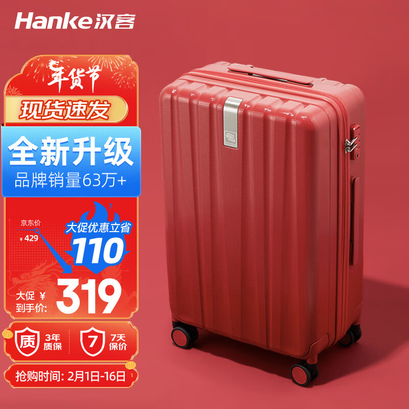 汉客结婚陪嫁红色行李箱拉杆箱女登机旅行箱20英寸枫叶红婚箱再次升级价格:429.00元!