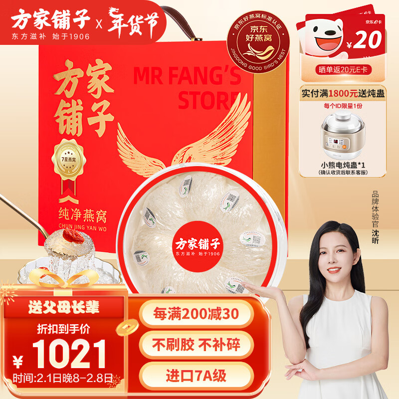 方家铺子 7A燕窝干盏礼盒装50g 马来西亚溯源干燕窝 年货过年礼盒 送礼老人孕妇产妇产后女性滋补营养品礼品价格:1399.00元!