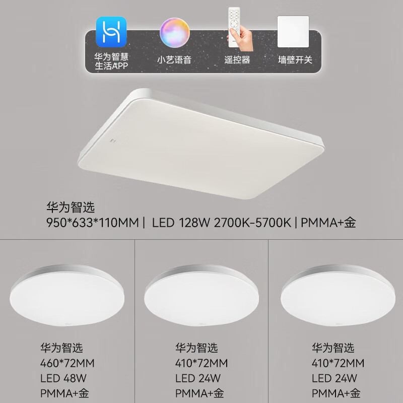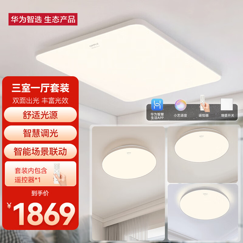 华为智选 欧普吸顶灯【 三室一厅套餐】128w客厅灯+48w卧室灯+24w卧室灯*2价格:1999.00元!