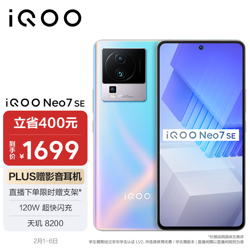 vivo iQOO Neo7 SE 12GB+512GB 银河 天玑8200 120W超快闪充 120Hz柔性直屏 5G游戏电竞性能手机价格:2099.00元!
