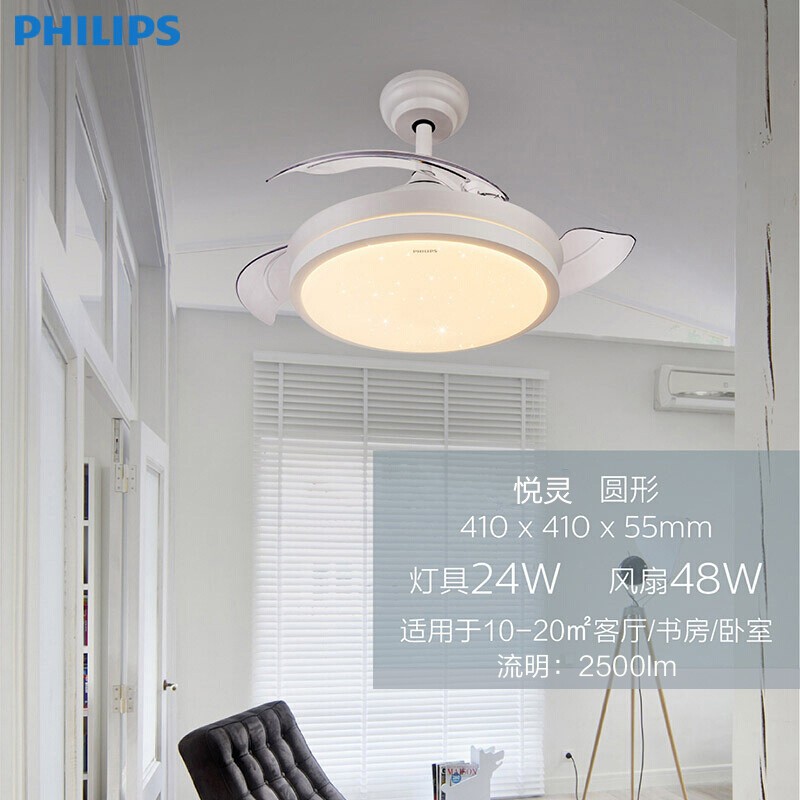 飞利浦(PHILIPS)led风扇灯吊扇灯吊灯餐厅卧室客厅简约带遥控调色24W+48W悦灵价格:649.00元!