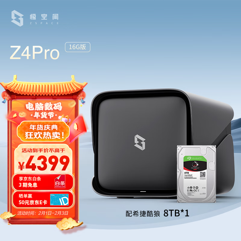 极空间私有云Z4Pro 16G版四盘位Nas网络存储家庭个人相册备份文件同步【配8T希捷酷狼硬盘】钛金灰价格:4499.00元!