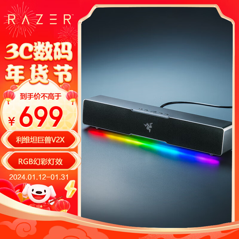 雷蛇(Razer)利维坦巨兽V2 X 游戏条形音箱 RGB幻彩 电脑音箱价格:699.00元!