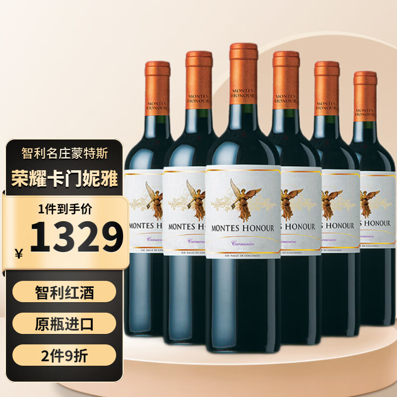 MONTES蒙特斯天使荣耀卡门妮雅干红葡萄酒 智利进口红酒750ml 整箱6支装价格:1398.00元!
