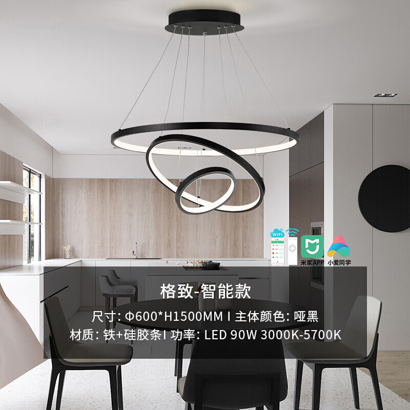雷士(NVC)餐吊灯现代简约北欧风吊灯智能三色调光餐吊灯90瓦WHXD90W/G-01价格:679.00元!