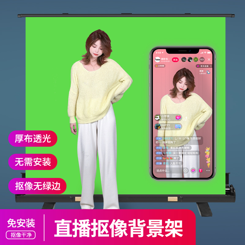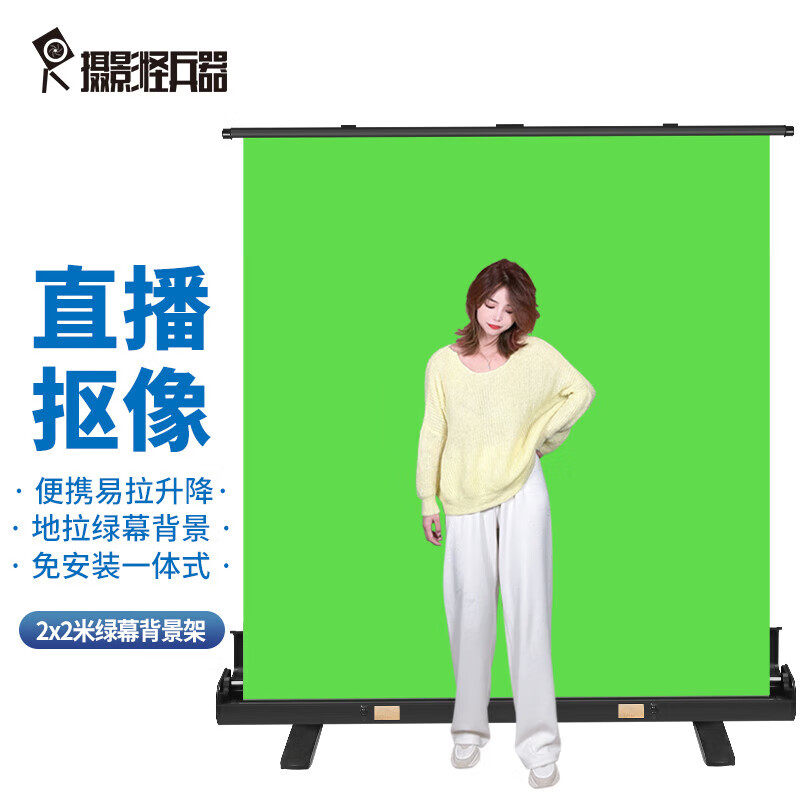摄影怪兵器(hakutatz)地拉绿幕抠像背景布拍摄网红直播背景架便携易拉升降直播间室内拍照摄影2X2米价格:958.00元!
